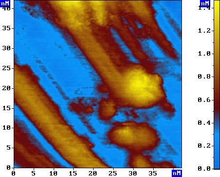 [Image] СТМ изображение молекул титина на поверхности HOPG. Скан размером 42x42 нм.