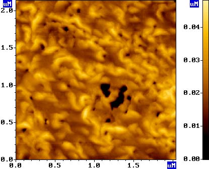 ССМ изображение многослойной ЛБ-пленки Arachidic Cd. Размер скана 2.0x2.1 мкм.
