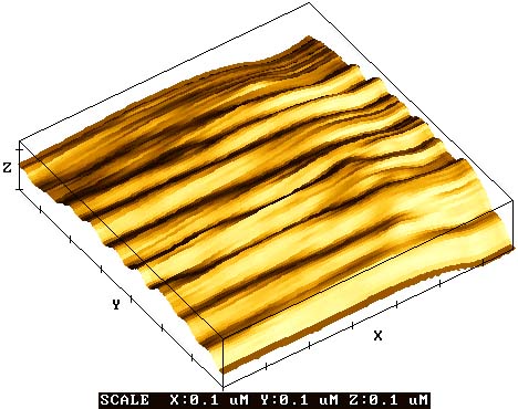 Измерено М.Еремченко, Научно Исследовательский Институт Физических Проблем & НТ-МДТ, Москва, Россия. V.A.Fedirko, V.A.Bykov, M.D.Eremtchenko, V.I.Shashkin and V.M.Daniltzev. Characterization of GaAs/GaAlAs MOCVD Superlatice by STM/AFM Technique. Russian Academy of Siences. Abstracts of Invited Lectures and Contributed Papers, St Petersburg, Russia, 24-28 June 1996, pp.. 381-384. | ||||||||||