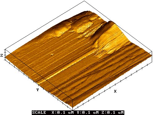 Измерено М.Еремченко, Научно Исследовательский Институт Физических Проблем & НТ-МДТ, Москва, Россия. V.A.Fedirko, V.A.Bykov, M.D.Eremtchenko, V.I.Shashkin and V.M.Daniltzev. Characterization of GaAs/GaAlAs MOCVD Superlatice by STM/AFM Technique. Russian Academy of Siences. Abstracts of Invited Lectures and Contributed Papers, St Petersburg, Russia, 24-28 June 1996, pp.. 381-384. | ||||||||||